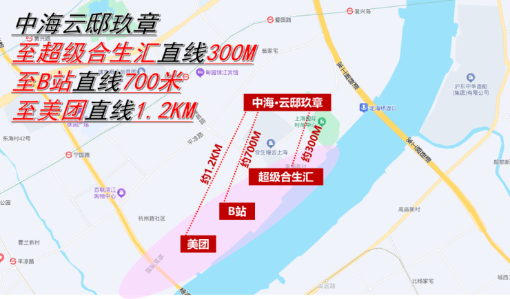 另外,规划24号线杨浦滨江合生汇站点的直线距离仅约300米。