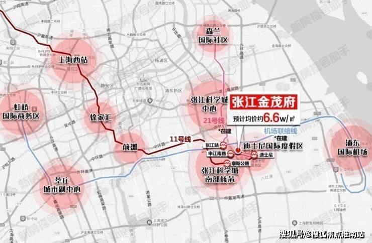 未来机场联络线快速通达浦东机场、上海东站、莘庄以及虹桥商务区,轨交21号线南北向通达张江科学城核芯、森兰国际社区等。