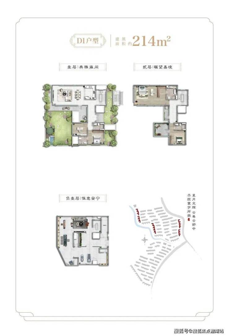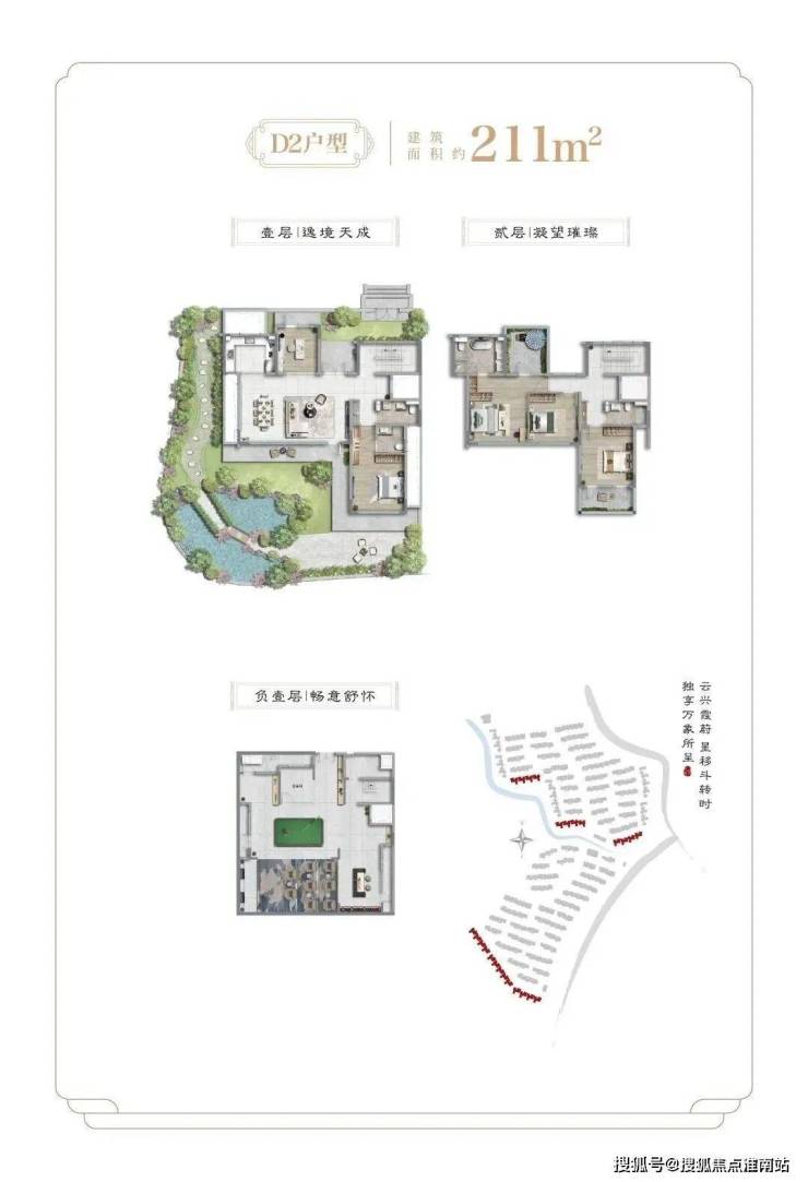 项目二期为纯别墅产品,社区容积率约0.41,面积段约为138-455㎡之间不等,不仅延续了一期多重景观结构,出市入室的仪式感满满,更是提升为围合式院落结构,增加了转角街巷之间的景观点,细节之处尽显大宅风范和业主的雍容气度。除常规的有天有地之外,还配有超高层高地下室及露台。