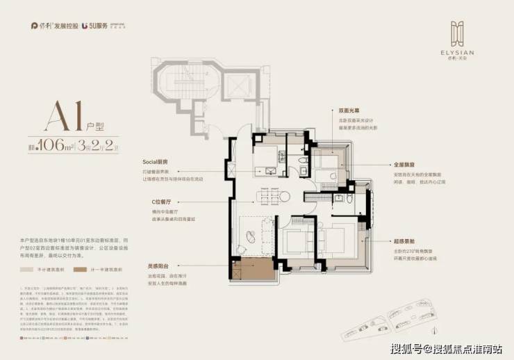东1#边套:全屋飘窗+约270°的转角飘窗,实际空间感十分优秀!