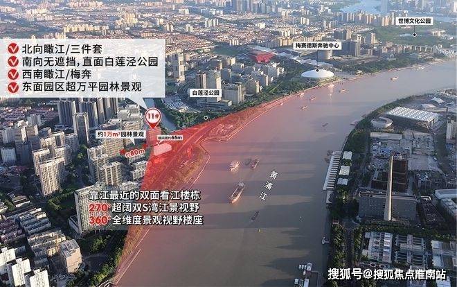 ②360°全维度景观视野楼座:北向瞰江/三件套、南向白莲泾公园、西面瞰江/梅奔、东面园区超万平园林景观!