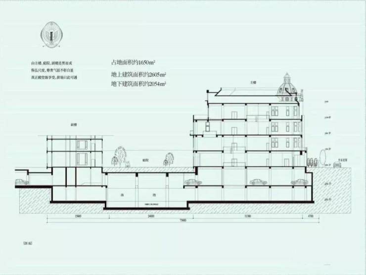 5栋海派洋房建筑,占地1.5-2.5亩,面积在3500-5000平米,每层层高约4.5米。