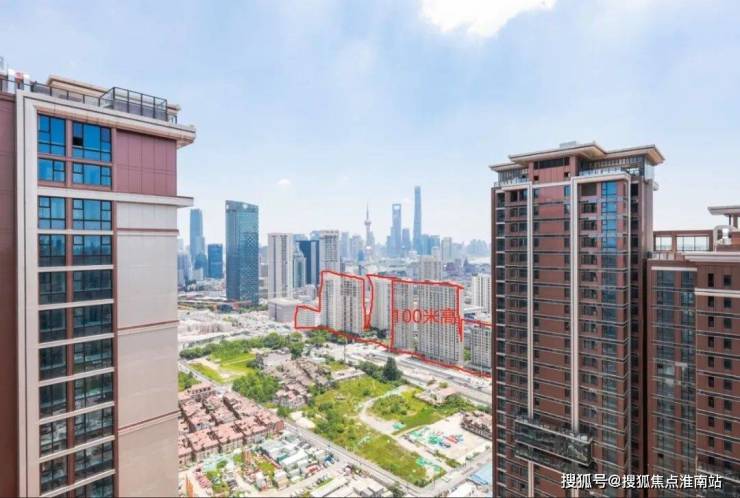 另外还有一点要注意: 超高层建筑有高区,就一定会有低区。能看到陆家嘴三件套,还能看到苏州河的只能是高区的”少数派“,而中、低区的楼层大概率会被东南角的圣和静安公馆所遮挡。(如下图)