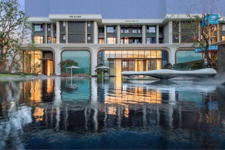 【中建玖上琅宸】汲取豫园“金声玉振”灵感,转译“金镶玉制”建筑形制。选取景德镇稀有陶板,融入石材与铝板,造极窗墙比,打造海派先锋格调的公建化立面,重新定义当代美学。