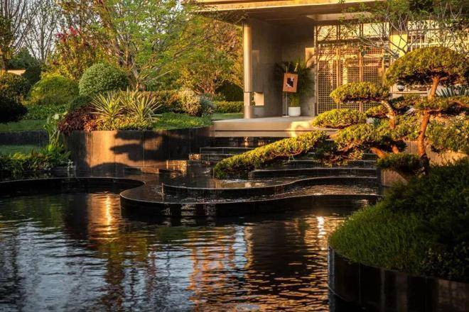 滨纷城又把小区主入口做得如酒店一般奢华,张扬的门头、石材景墙、水景庭院等元素都装进了入口的一方天地。