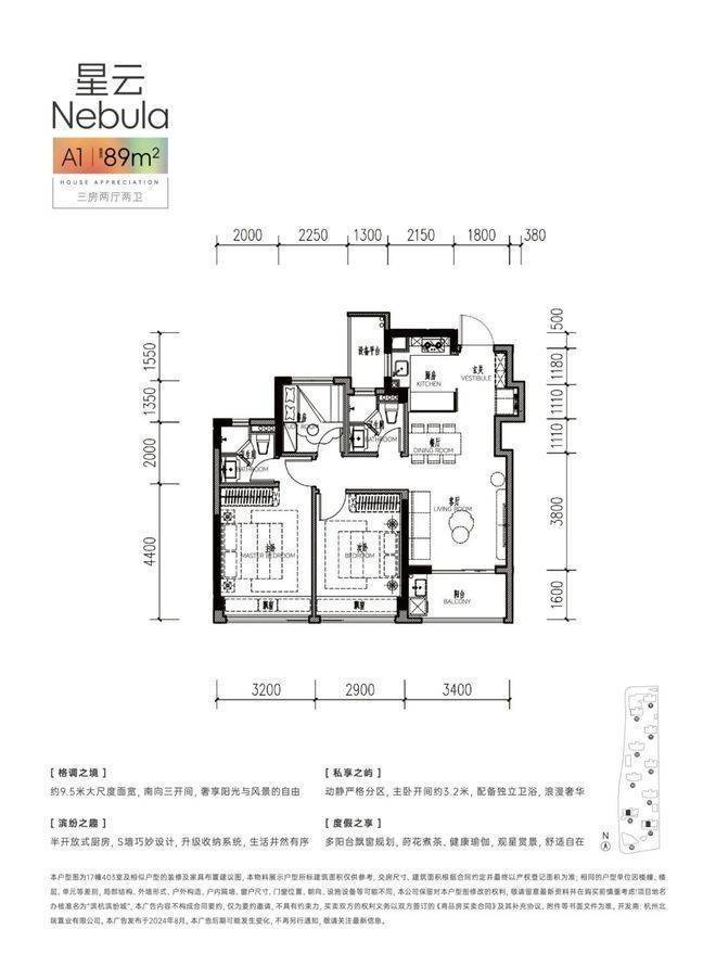 滨江造“1字头”豪宅专家滨江集团全力匠造的,总价100多万,对年轻人极度友好。占地面积约43万m²,总建筑面积约98万m²(分三期地块开发),小区配套地铁、商场、学校(幼儿园到初中)、公园、活动健身等,住宅70年,绿化率35%,滨江物业,首开面积89-115m²,限价19800元/m²(含装修)