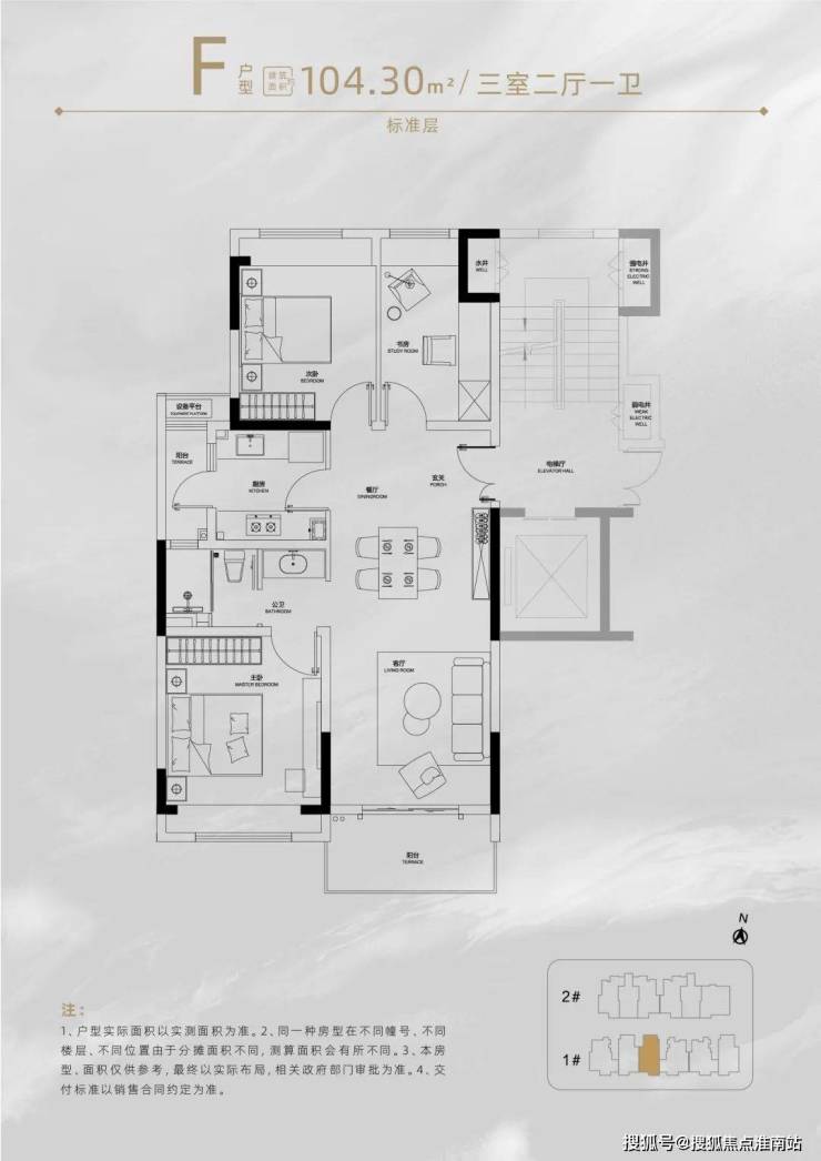 此外,项目户型面积段很丰富。从建面约104㎡的入门级三房,到建面约148㎡的终极改善四房产品,可以尽情选择。
