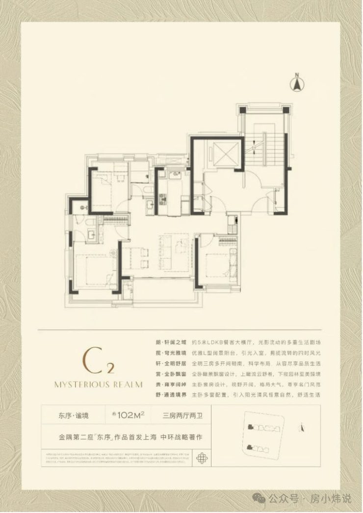 优势:国企开发交付有保障;桃浦中央公园头排景观稀缺;户型设计得房率较高(约80%+),102㎡三房横厅设计在板块内具备竞争力;装修标准对标豪宅。