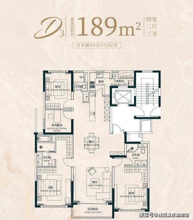 建面约183㎡4房2厅2卫户型:昌平云岸售楼处电话:400-8818-994