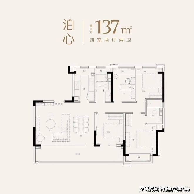 还有一个建面约137㎡四房户型,与上个户型格局相似。吴风宸樾府售楼处电话:400-8567-334✔✔苏州吴风宸樾府售楼处电话☎:400-8567-334✔✔✔