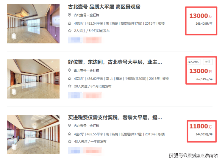 古北壹号挂牌价,图源链家