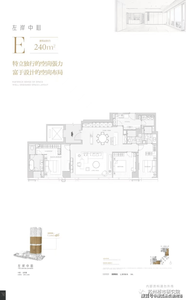 项目邀请日本日建设计、LWMA李玮珉、CCD、DIA丹健国际等全球顶尖设计团队联袂打造,三座塔楼以绿植为核心,打造“垂直花园”概念,重新定义苏州高端住宅新标准 。