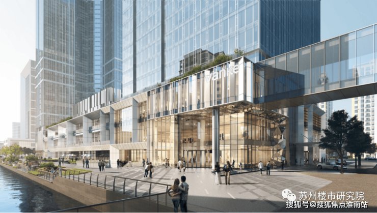三座塔楼以植物为核心设计元素,在楼栋之间形成一整片绿色区域,呼应苏州当代城市肌理,将商业水岸、花园水岸、临街活力区和屋顶花园等绿意映衬在建筑设计之中,打造摩天大厦中的垂直花园。