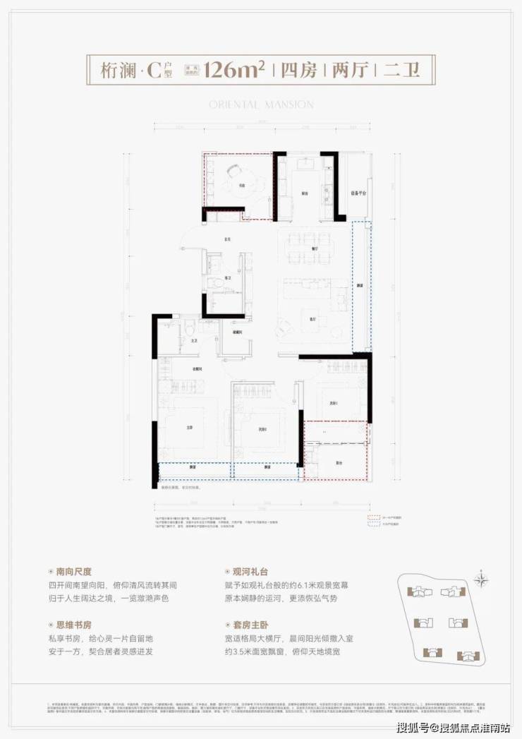 建面约126方户型:大边厅+南向的阳台,还有大套房,内含卫生间以及衣帽间,再加上独立的储藏室,收纳空间满分。