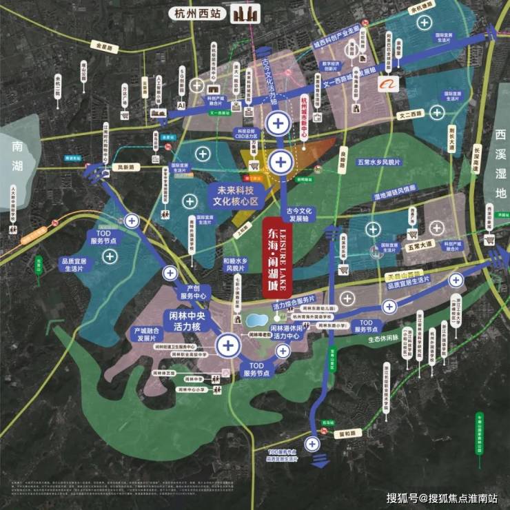 未来科技城被誉为中国经济引擎,杭州新中心,区域内注册企业涉及人工智能、芯片、数字经济、生物医药等高精尖科技产业。代表性的有阿里巴巴全球总部、菜鸟总部、之江实验室、海康威视等等。吸引顶尖人才集聚于此。闲湖城距离杭州未来科技城公共中心直线距离约3.5公里。