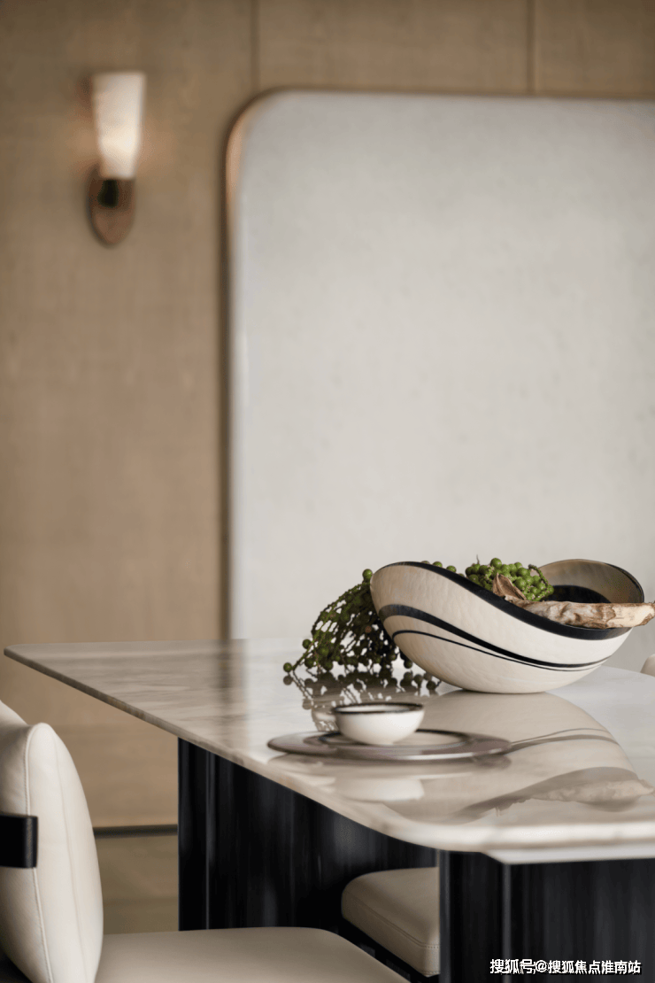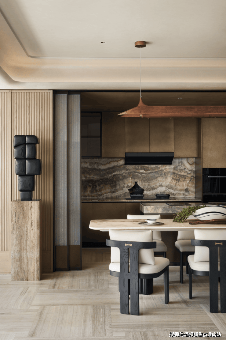 天然石材、木材与黄铜调和出空间醇厚质朴、温润坚定的雅奢调性,亲切而放松。