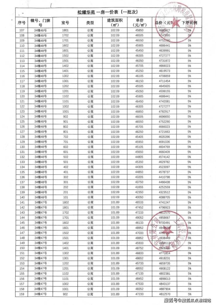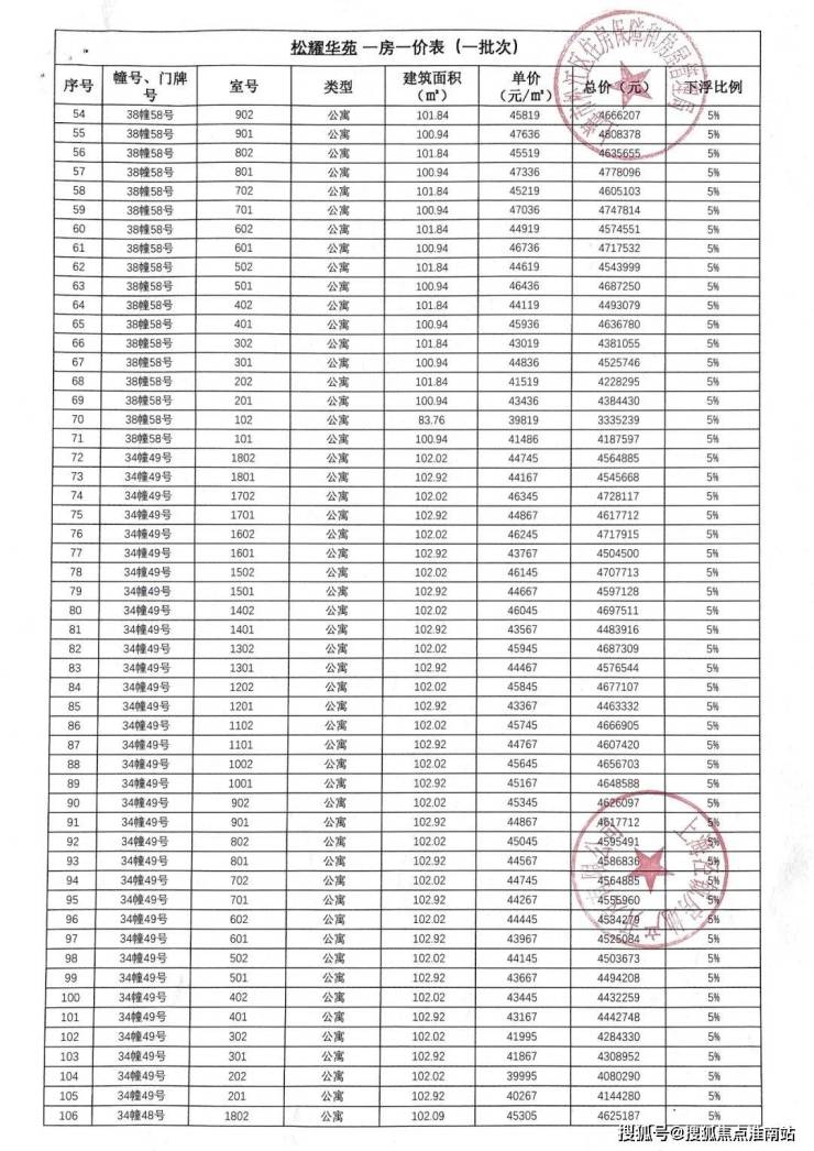 最新一房一价表:
