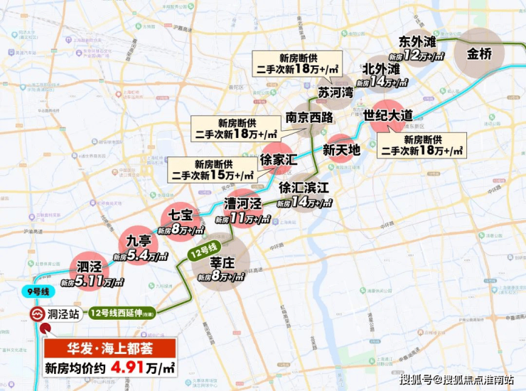 9号线和12号线上,七宝板块&莘庄板块新房已经约8万+/㎡、漕河泾新房约11万+/㎡、北外滩新房更是约14万+/㎡、东外滩12万/㎡...
