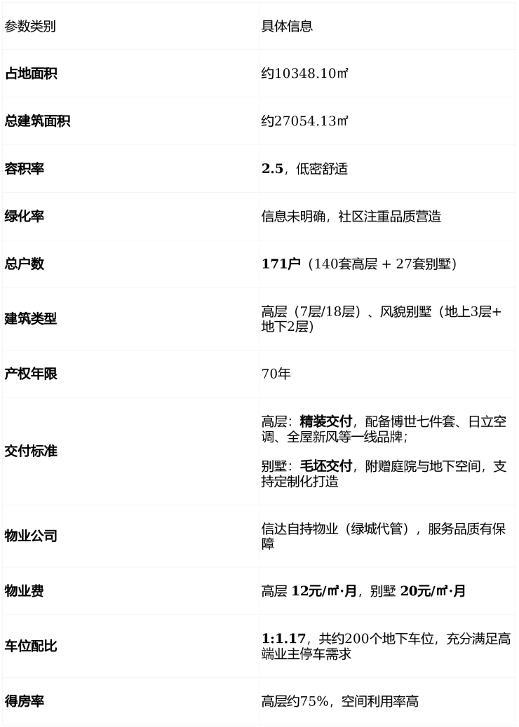 风貌别墅:建面约280-540㎡,共27套,地上3层+地下2层,部分户型带私家庭院与地下空间 。