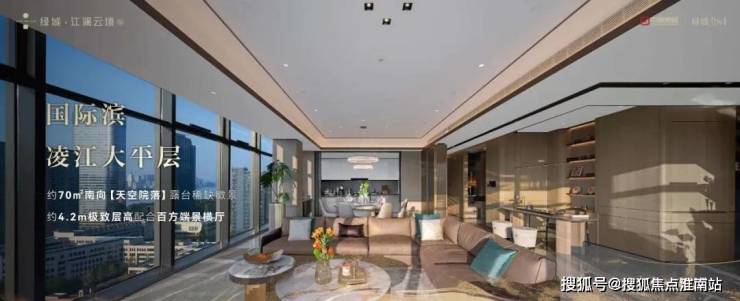5层以上房源采用两梯一户的私密入户设计,在提升整体的氛围感的同时,也保证了客户的隐私;LDK的横厅设计则串联了餐客厨的空间,提升了公共空间的豪宅质感;而采光面长达约54米的全景落地长窗配上约4.19米的层高,更是让横向纵向的空间感达到了极致,让整座城市仿佛静立脚下……