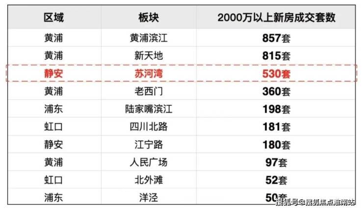 第一,去年约2000万以上的新房成交套数,苏河湾是全市第三 ,仅次于黄浦滨江和新天地。