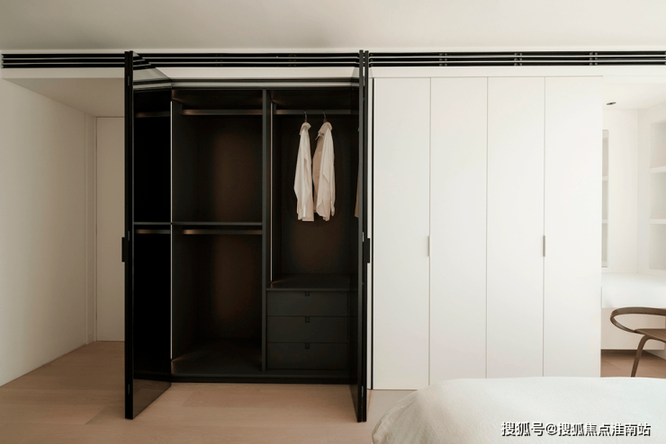 卧室是整个家中唯一需要私密性的空间,仅保留了休息和储物两个基础功能。