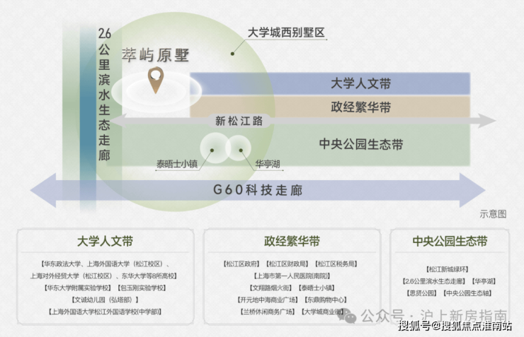 三公里辐射圈内,8所高校(含两所211)华东大学附属实验学校、包玉刚实验学校、文诚幼儿园(弘塔部)等名校环伺,坐拥政务要枢、松江首家三甲医院、繁华商圈皆精粹于此,尽纳墅居版图
