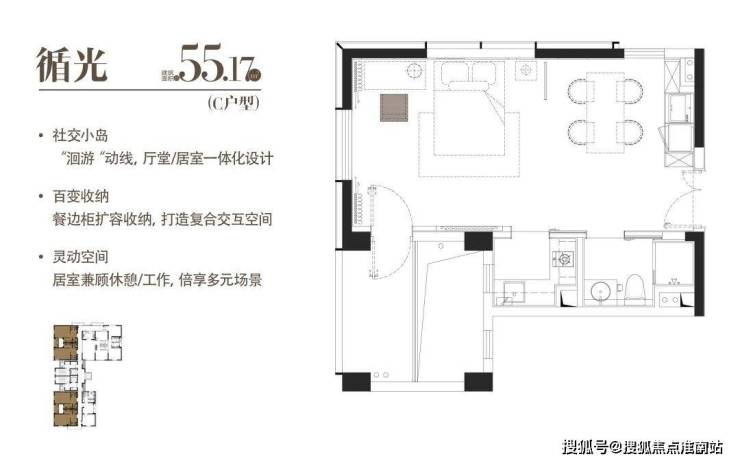 C|循光|建面约55.17m²|一室一厅一厨一卫