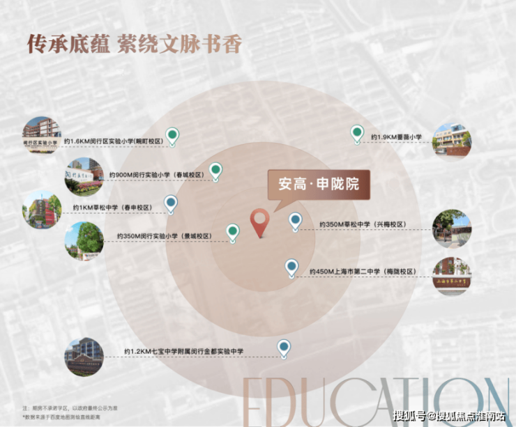 直线距离闵行区实验小学(景城校区)190米,直线距离莘松中学(兴梅校区)200米,还有闵行区实验小学、莘松中学,延续浓厚的书香文化底蕴。