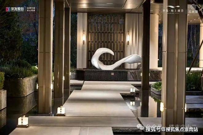 进入华发海上都荟社区,首先映入眼帘的是约24.8米高的尊奢门庭,入口雕塑造型取自卡地亚的经典产品Trinity,营造出高贵典雅的归家仪式感.