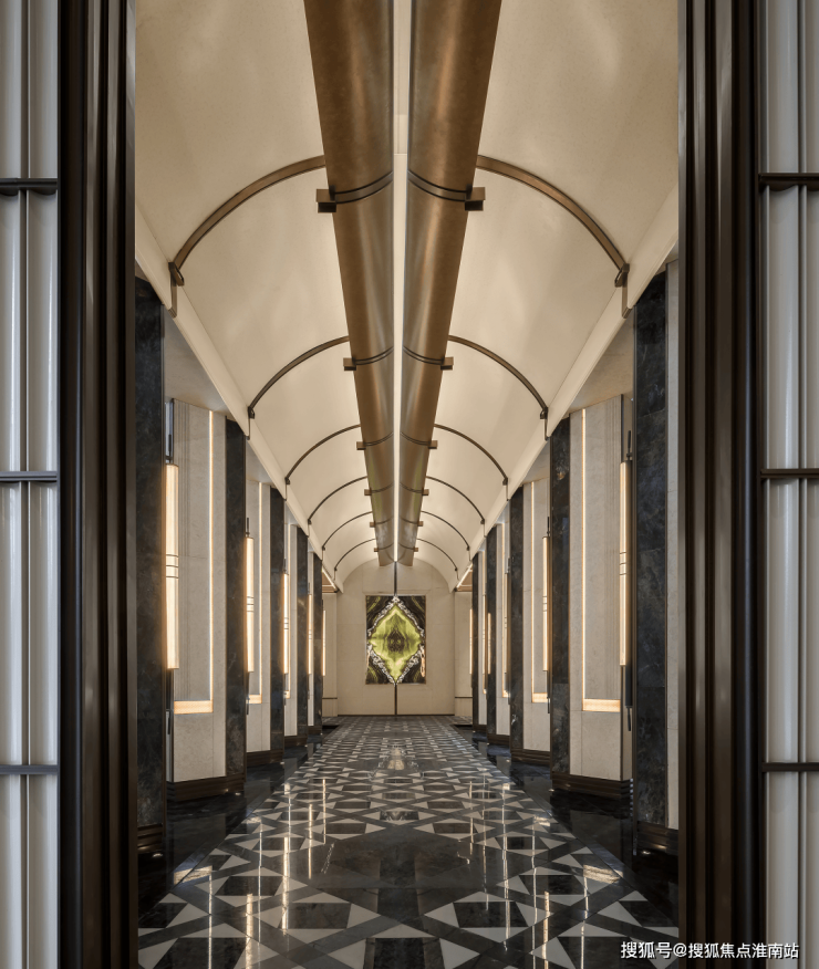 举步徐行,龙湖御湖境售楼处电话☎:400-998-9694 来到致敬金贝尔美术馆打造的「天穹光廊」,长廊的地面由蓝翡翠奢石+纯净汉白玉+温润的温德姆灰石材3种奢石,经过精细切割与拼花,复现了香港中银大厦极具几何美学的拼花,中轴对称的庄严格局,将空间升华为博物馆级的艺术殿堂。