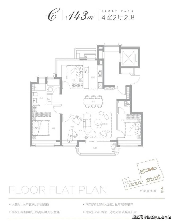以已经开放样板间的建面约143㎡户型为例: