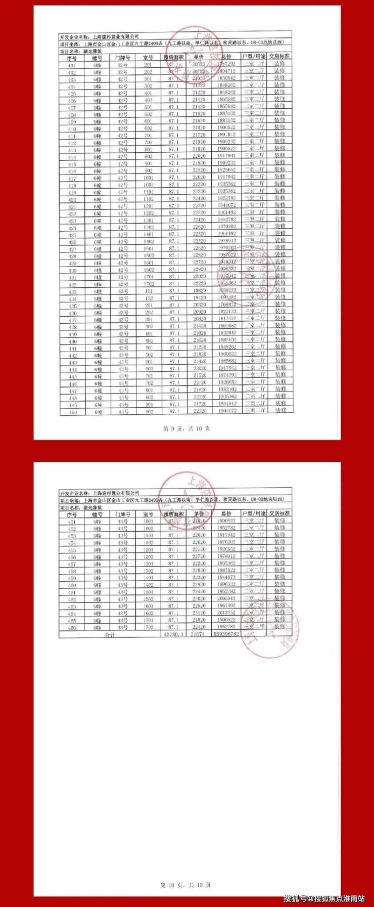 一房一价表