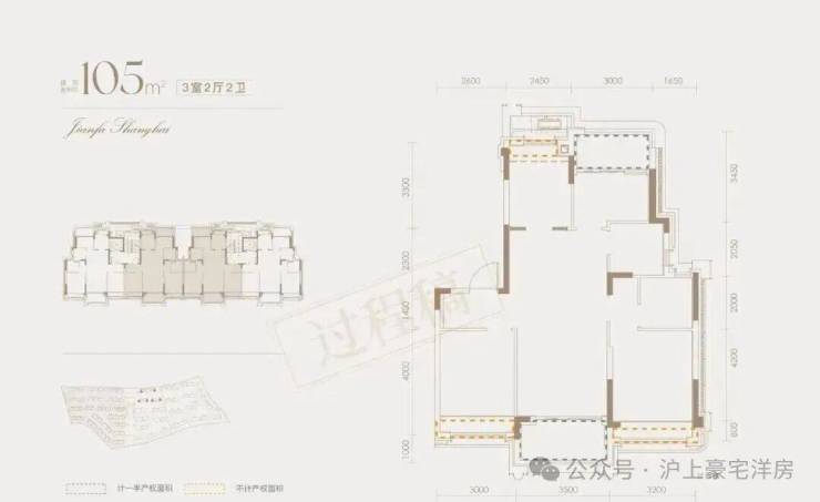 105㎡三房两厅两卫:总价1000-1280万,单价约10.5-11.2万/㎡