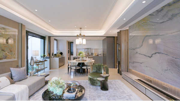 本次加推的焦点,无疑是位于社区楼王位置的 建面 约220㎡四房两厅三卫 户型 。它由知名设计公司SLD梁志天打造,以 “西意東韵·奢享鎏金” 为理念,堪称终极改善的终极答案。