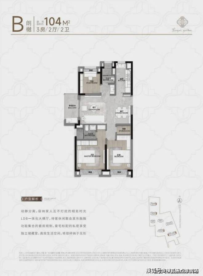 静安玺樾售楼处电话:400-881-8994(售楼处最新电话)上海静安玺樾官方电话:400-8818-994✔(官方售楼处预约看房热线)104㎡3户型特点:该户型多为楼栋的东边套,是一个观景户型.客厅连接270°阳台,视野出众.双卧朝南,阳光满溢.从次卫布局看,如果家庭人口较少,该户型还能做成双套卧.