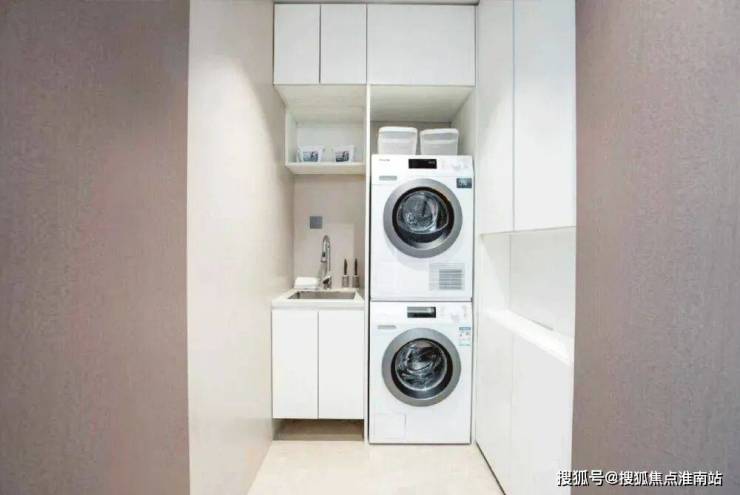 该户型配置独立家政间,空间大致约2.3平,可放置洗烘一体机,还可根据需求灵活改造为储藏间或零食柜。