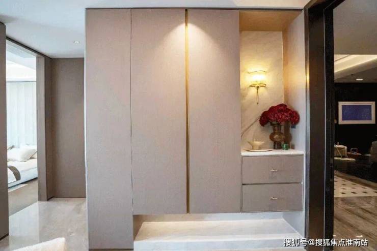 入户玄关柜更是藏着巧思,钥匙、常穿鞋子、长筒靴乃至家庭医药箱等各类杂物,都能实现分类收纳!别忘了,还有约8.7平飘窗赠送,整体收纳空间可观。