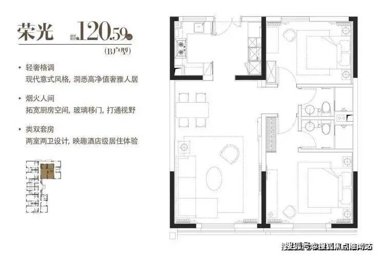 B|荣光|建面约120.59m²|两室两厅一厨两卫