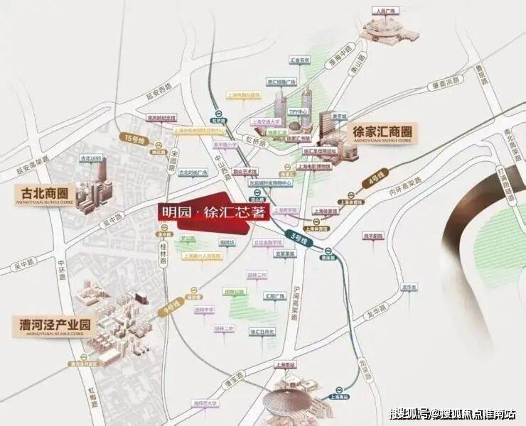 三区交汇催生活力与繁华,明园·徐汇芯著坐拥徐家汇CAZ、古北CAZ、漕河泾开发区,三大辐射圈,享国际繁华版图。