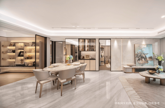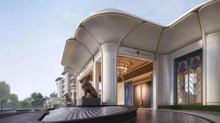 「玉兰门庭」摩登飘逸,环抱式落客前场,大师定制非遗掐丝珐琅门钹,流转温润光华,敬呈归家尊崇礼序,自此启幕生活的华贵序章。