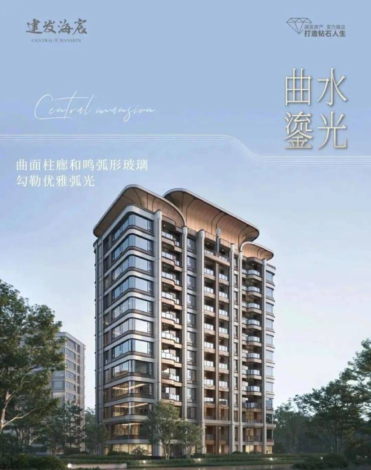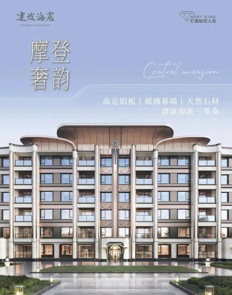 建发「宸系」中式作品,铝板与玻璃幕墙外立面,配园林景观。约1150套房源高低配,限高40米,含小高层、洋房、叠墅产品,满足刚需与改善需求。
