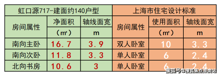 对比最新的《上海市住宅设计标准》,每一个居室的面积都远超标准,北卧室更是超过标准规定值的约76.5%。