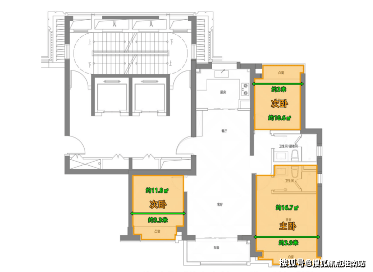 卧室的尺度十分慷慨,即使是最小的次卧轴线面宽也有3米多。