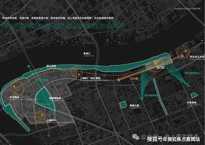 地块独占陆家嘴滨江约1.5km岸线,南面是万科翡翠滨江、西侧陆家嘴壹号院、恒大滨江华府,东侧民生路渡口.
