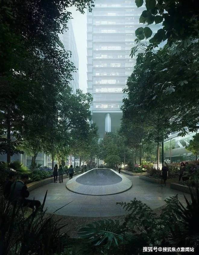 设计特别关注商业与住宅塔楼的交接面,通过景观缓冲区将公共领域和住宅的私属空间分隔开来,以求最大限度地保护居民的隐私,营造安静的居住环境,并削弱后勤和屋顶设备的视觉影响.