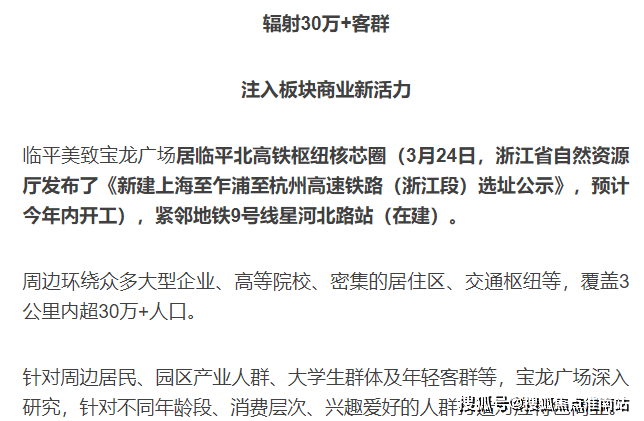 临平美致宝龙广场有别于传统盒子式商业,它依托于室内场景与室外场所的自如切换,将全面打造主题式、场景式、差异化以及绿色生态的商业空间
