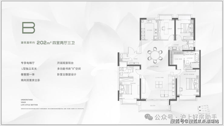 M+科技体系:首创M+科技体系,以智慧、健康、精工、生态四大体系,赋予空间美好的体验与品质,每一寸细节皆为生活悉心定制。