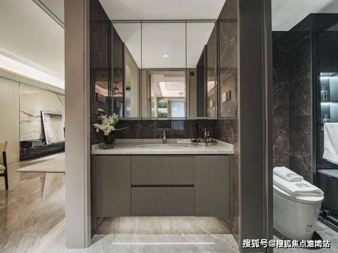 该户型特别注重居住的舒适性与私密性,主卧室配备独立卫浴,形成一个完整而尊崇的套房系统。主卫干湿分离设计不仅实用,更强化了主人的私属领域感,极大提升了居住的尊贵体验。公共卫生间则设置独立马桶间与洗手台,方便不同成员同时使用,互不干扰,巧妙解决多代同堂家庭早高峰的使用痛点。