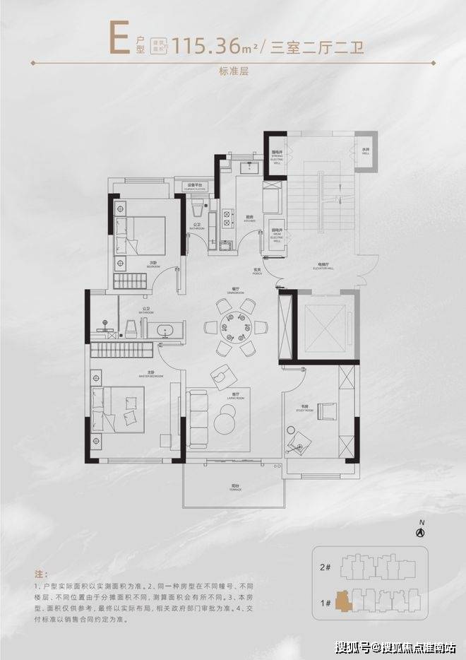 建面约104-115㎡ 多功能三房:适合首改家庭,双飘窗+宽景阳台提升采光与实用性;